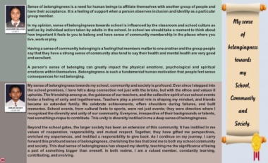 My sense of belongingness towards my school, community and society is profound. Ever since I stepped into School,