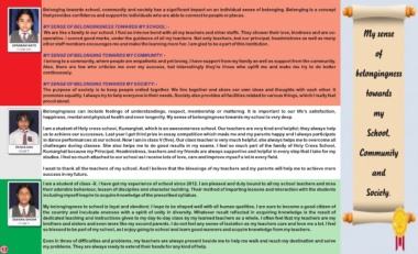 My belongingness to school is loyal and obedient. I hope to be shaped well with all human qualities. I am sure to become a good citizen of