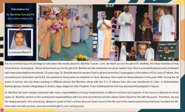 It is my immense joy and privilege to note down few words about Sr. Berthila Tuscan. Lord, we thank you for the gift of Sr. Berthila, the Head mistress of Holy