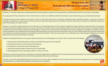 Dear Rev. Fr. Principal, Headmistress, Esteemed Staff, Dedicated Students, Supportive Parents/Guardians, and Well-Wishers of Holy Cross School - Kumarghat,